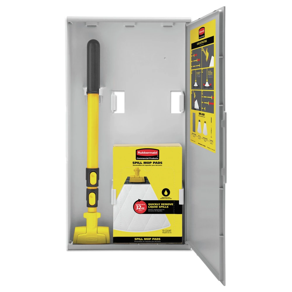 - Can be mounted on most wall surfaces for quick and convenient access in the event of spills