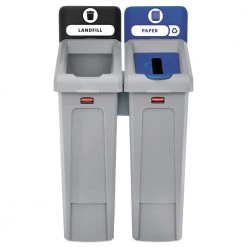 Rubbermaid Commercial 2007915 Slim Jim 46-Gallon 2-Stream Landfill/Paper Recycling Station Kit